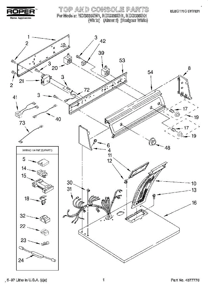 Temperature jumper wire for dryers. Connects temperature sensors and controls. Replace if wire is damaged, frayed, corroded, or has broken connectors.