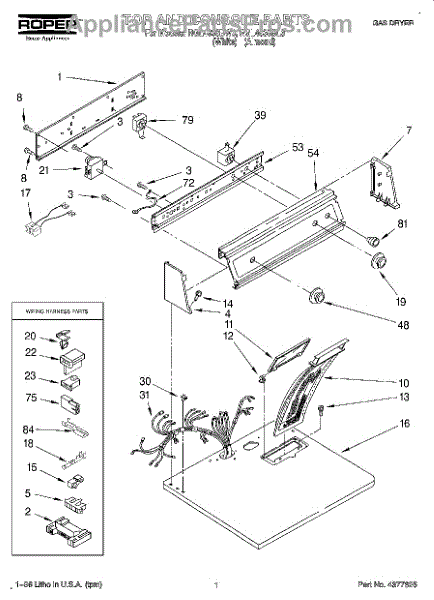 Parts for Roper RGL4636BL3: 01 - Top And Console, Lit / Optional Parts