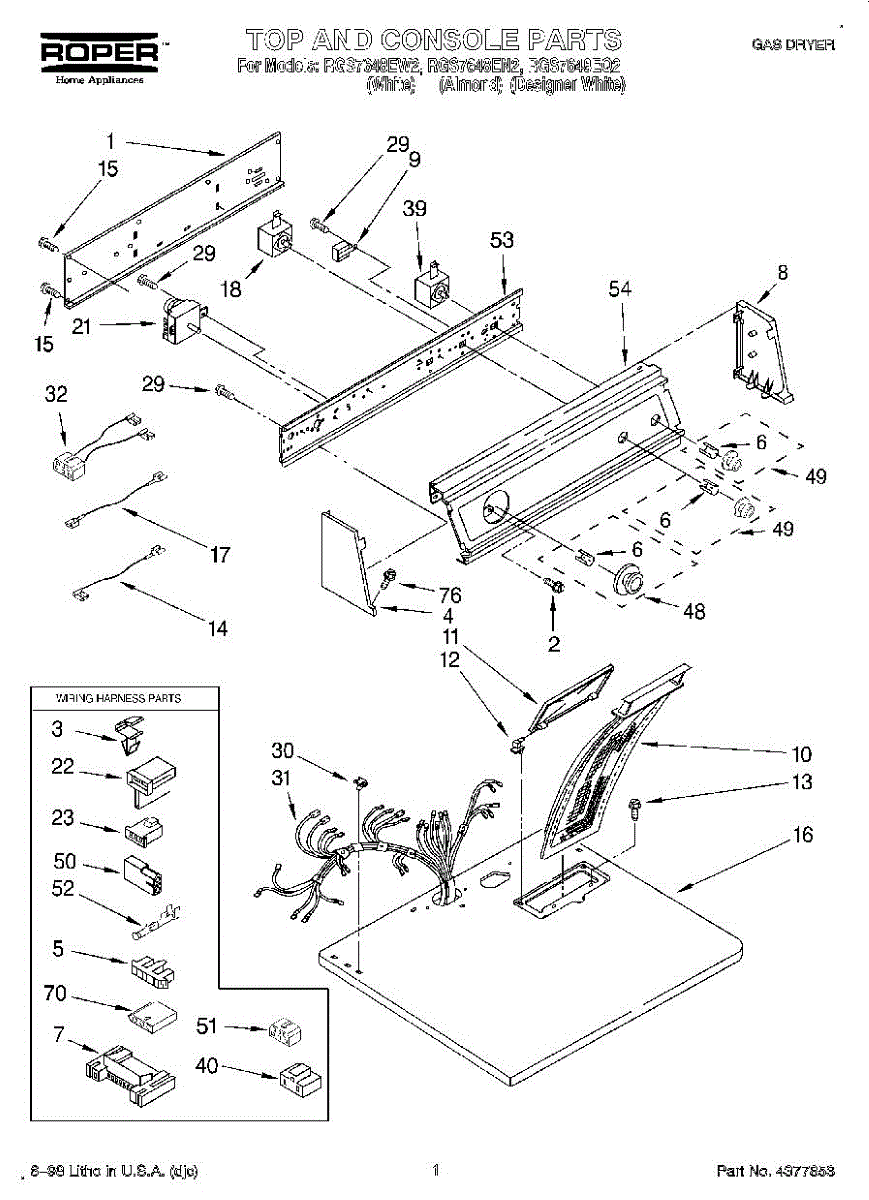 Wire harness assembly that routes power and control signals between dryer components. Replace if wires are damaged, worn, broken, or connections are loose.
