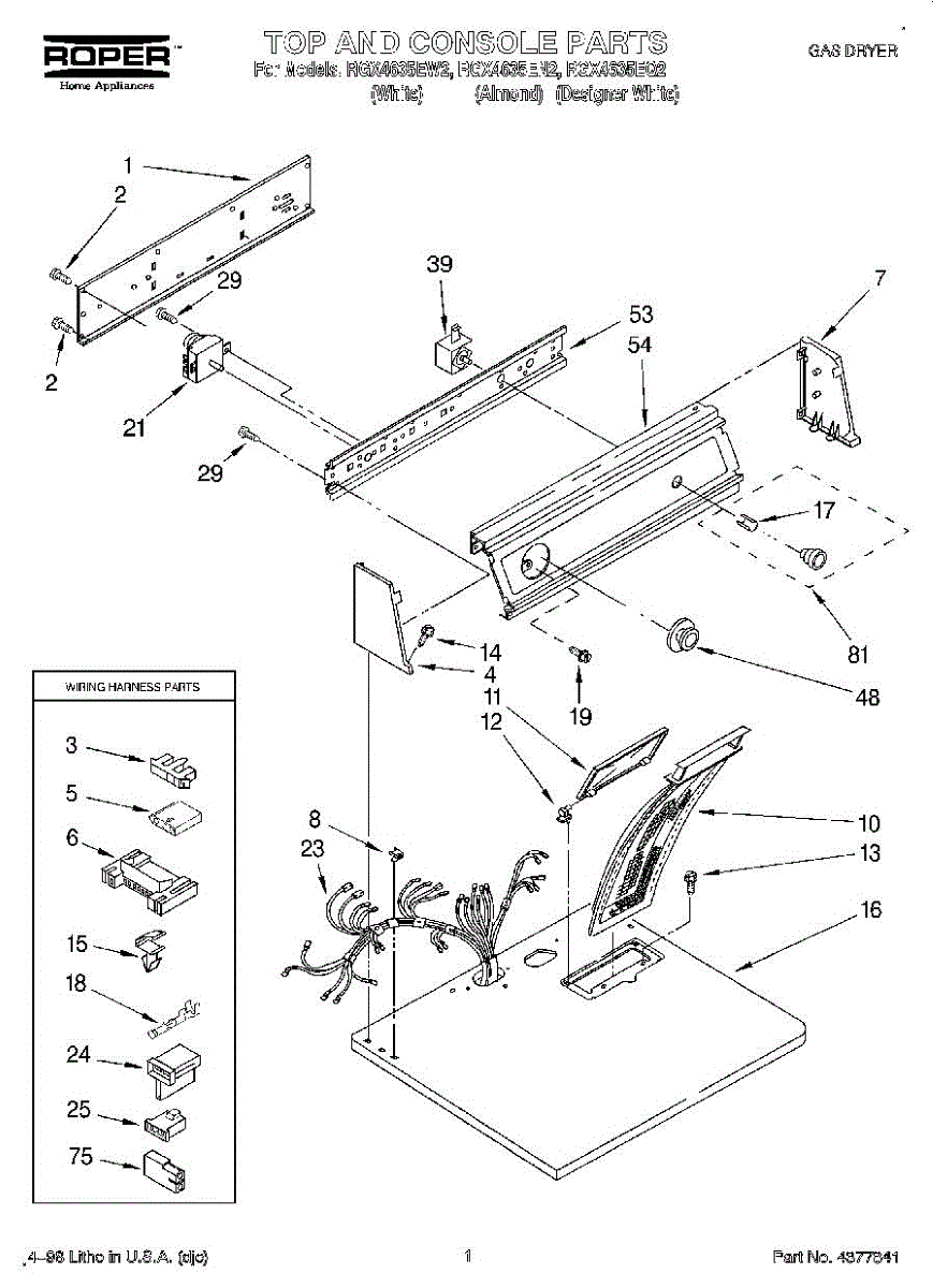 Parts for Roper RGX4635EN2: 01 - Top And Console, Lit / Optional Parts