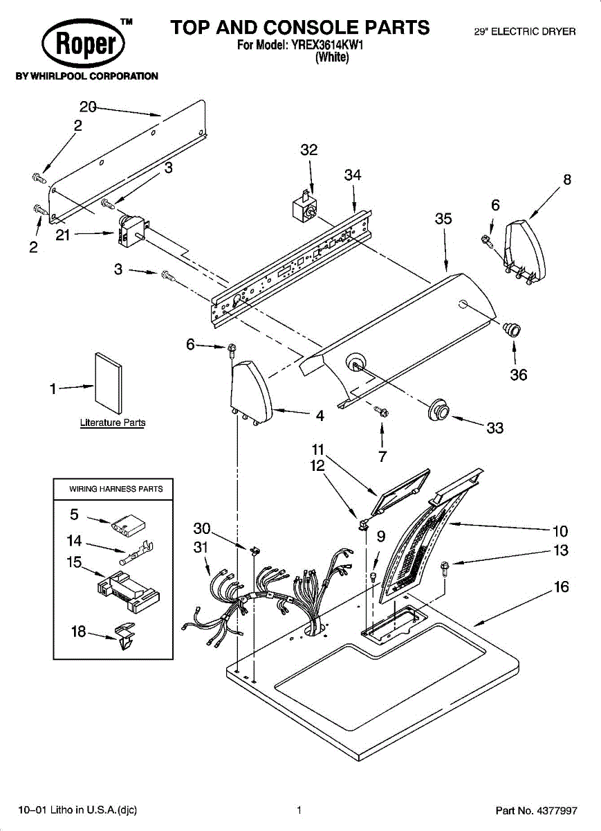 The Dryer Repair Kit is an OEM replacement part for Whirlpool 29-inch large capacity dryer models. It is a kit designed to provide various essential components and hardware needed for common dryer repairs or maintenance tasks.