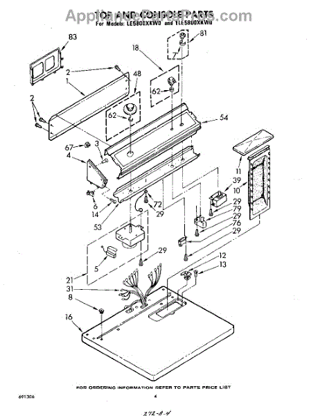 Parts for Whirlpool 1LE5800XKW0: 04 - Top And Console Parts