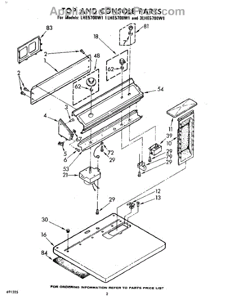 Parts for Whirlpool 1LHE5700W1: 02 - Top And Console Parts
