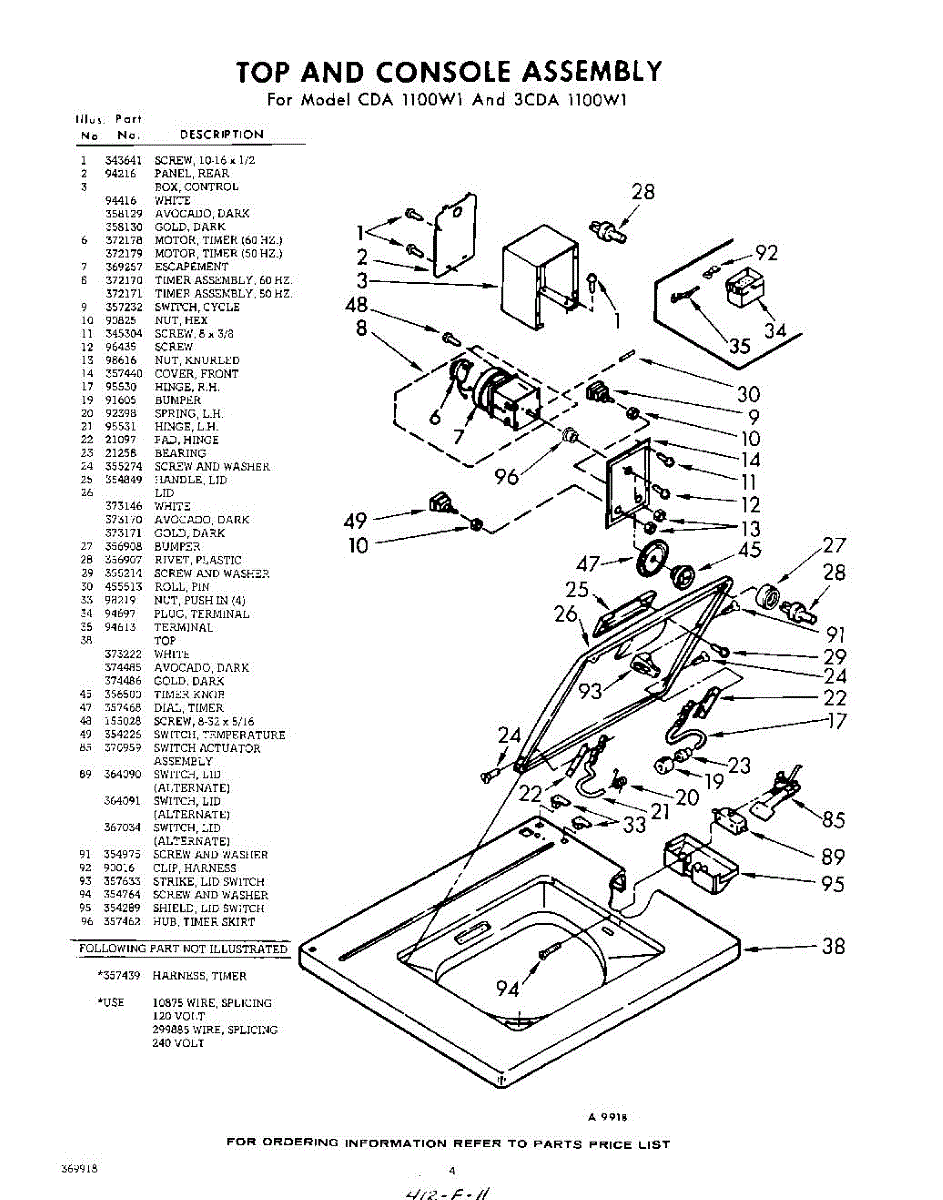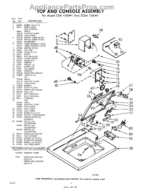 Parts for Whirlpool 3CDA1100W1: 04 - Top And Console Parts