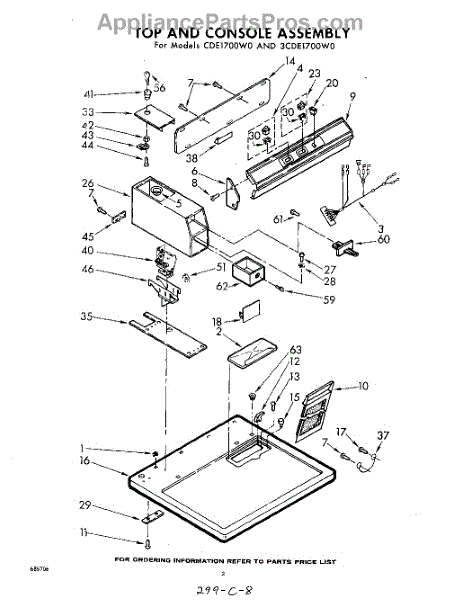 Parts for Whirlpool 3CDE1700W0: 02 - Top And Console Parts