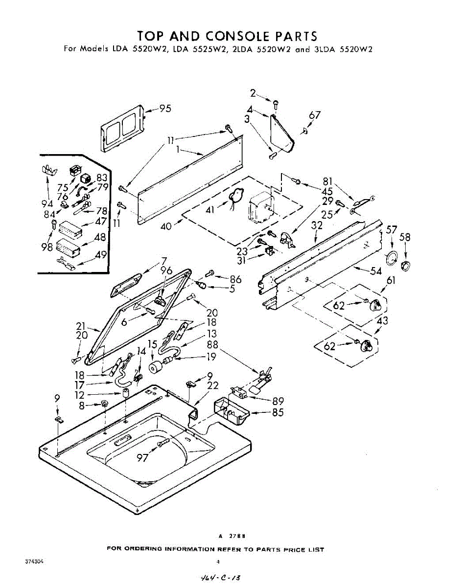 Parts for Whirlpool 3LDA5520W2: 04 - Top And Console Parts