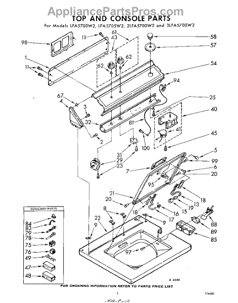 Parts for Whirlpool 3LFA5700W2: 05 - Top And Console Parts