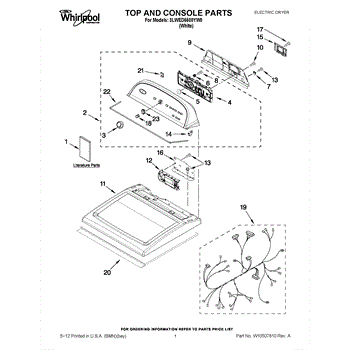 The Console Clip is an OEM part compatible with Whirlpool dryers. This clip secures the control console assembly to the top panel, ensuring it is firmly mounted during operation. Properly functioning clips are necessary to maintain the correct alignment of controls and prevent detachment.