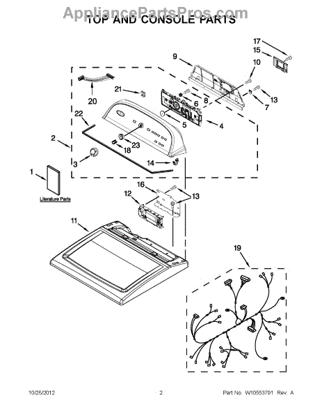 The Console Clip is an OEM part compatible with Whirlpool dryers. This clip secures the control console assembly to the top panel, ensuring it is firmly mounted during operation. Properly functioning clips are necessary to maintain the correct alignment of controls and prevent detachment.