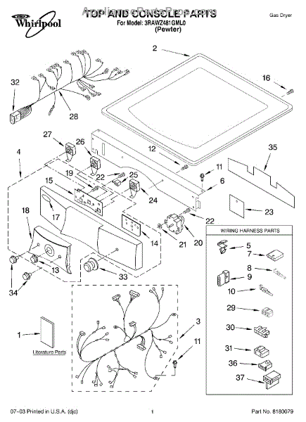 Parts for Whirlpool 3RAWZ481GML0: 01 - Top And Console Parts