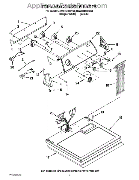 Parts for Whirlpool 4GWED4900YQ0: 02 - Top And Console Parts