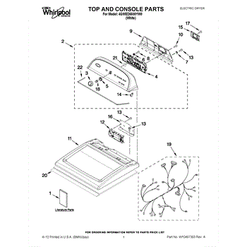 The Console Clip is an OEM part compatible with Whirlpool dryers. This clip secures the control console assembly to the top panel, ensuring it is firmly mounted during operation. Properly functioning clips are necessary to maintain the correct alignment of controls and prevent detachment.