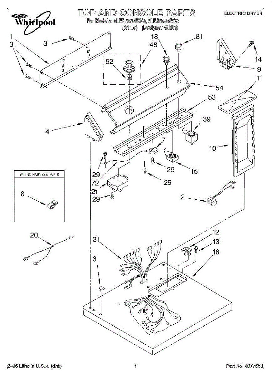 Note: This dryer push-to-start switch has 2 terminals.
