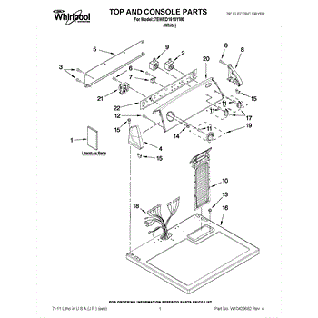 The Console Clip is an OEM part compatible with Whirlpool dryers. This clip secures the control console assembly to the top panel, ensuring it is firmly mounted during operation. Properly functioning clips are necessary to maintain the correct alignment of controls and prevent detachment.