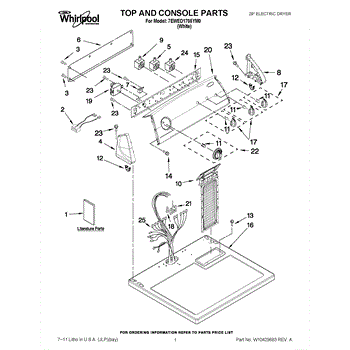 The Console Clip is an OEM part compatible with Whirlpool dryers. This clip secures the control console assembly to the top panel, ensuring it is firmly mounted during operation. Properly functioning clips are necessary to maintain the correct alignment of controls and prevent detachment.