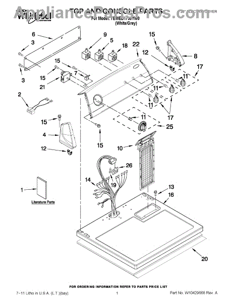 The Dryer Timer is an OEM part for Whirlpool dryers. It controls the drying cycles by regulating the duration and sequence of operations, ensuring that clothes are dried properly according to the selected settings.