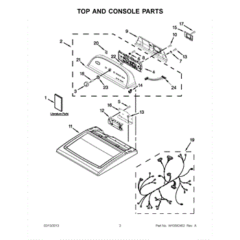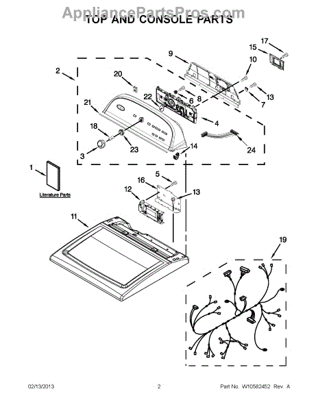 This is a dryer control panel. It Is located on the top middle of the appliance. The control panel is used as a way to manage all dryer operations, such as setting the correct temperature and ensuring the drying time is appropriate. The control panel has a number of small parts that can fail and cause problems. When this occurs, it may prevent the dryer from starting. It can also cause the dryer not to fill, drain, or spin. A screwdriver and a nut driver will be needed to replace the control panel. Unplug the dryer from the power outlet before starting. It should also be pulled away from the wall. Find the screws that hold the top panel and remove them. Pull on the panel to release the console tabs before removing the top panel completely. Take a photo of the wiring connections as a reference for installing the new control panel. Disconnect them from the old panel and remove it from the dryer before installing the new component.This control panel is an authentic OEM replacement part designed for use with Whirlpool dryers. It is directly sourced from the manufacturer and sold as an individual item.