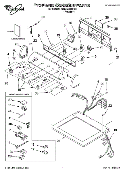 Parts for Whirlpool 7MGGQ9800PL0: 01 - Top And Console Parts