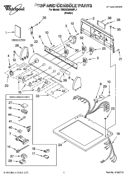 Parts for Whirlpool 7MGGQ9800PL1: 01 - Top And Console Parts