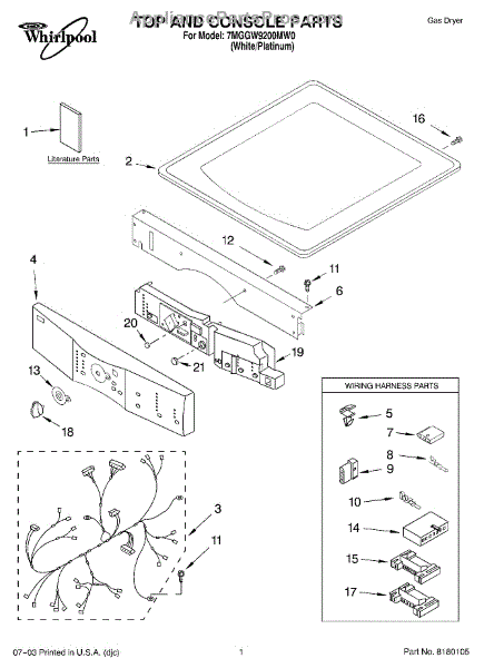 Color: Light gray used on platinum models. Measures about 1-2/3 inches in diameter. For blue order WP8181881. For dark gray used on pewter models order WP8182050.