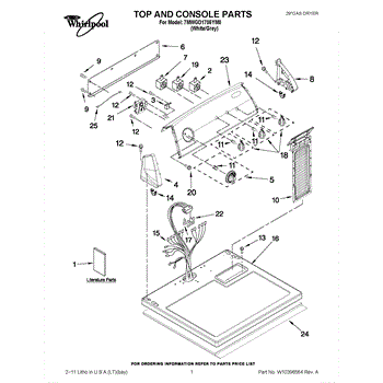 The Console Clip is an OEM part compatible with Whirlpool dryers. This clip secures the control console assembly to the top panel, ensuring it is firmly mounted during operation. Properly functioning clips are necessary to maintain the correct alignment of controls and prevent detachment.