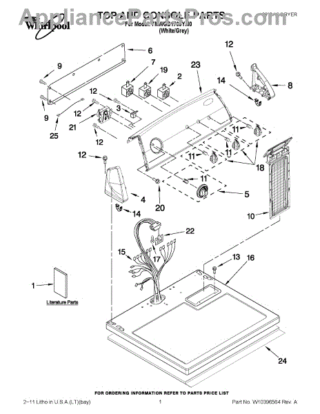 The Dryer Timer is an OEM part for Whirlpool dryers. It controls the drying cycles by regulating the duration and sequence of operations, ensuring that clothes are dried properly according to the selected settings.