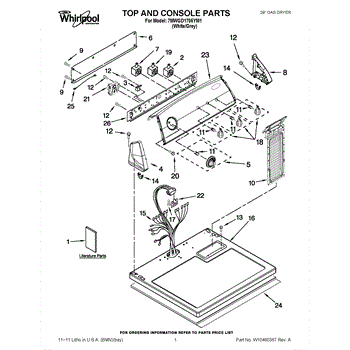 The Console Clip is an OEM part compatible with Whirlpool dryers. This clip secures the control console assembly to the top panel, ensuring it is firmly mounted during operation. Properly functioning clips are necessary to maintain the correct alignment of controls and prevent detachment.