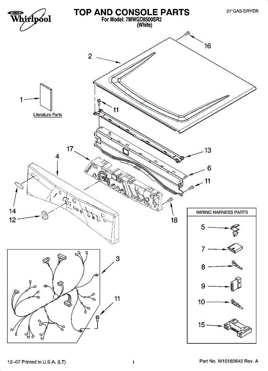 Wire harness for dryers. Connects electrical components inside the dryer cabinet. Replace if wires are frayed, damaged, or connections are loose or broken.