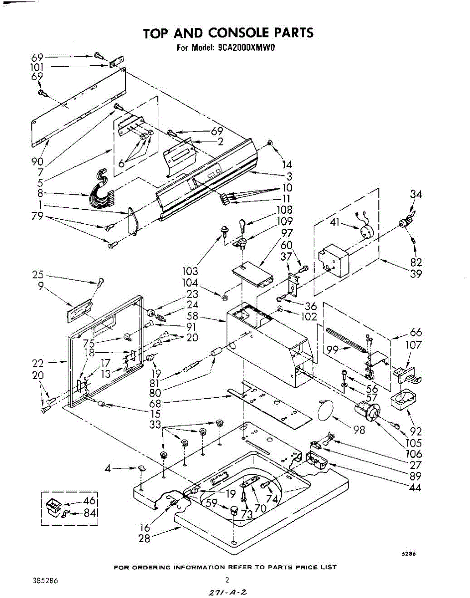 Parts for Whirlpool 9CA2000XMW0: 02 - Top And Console Parts
