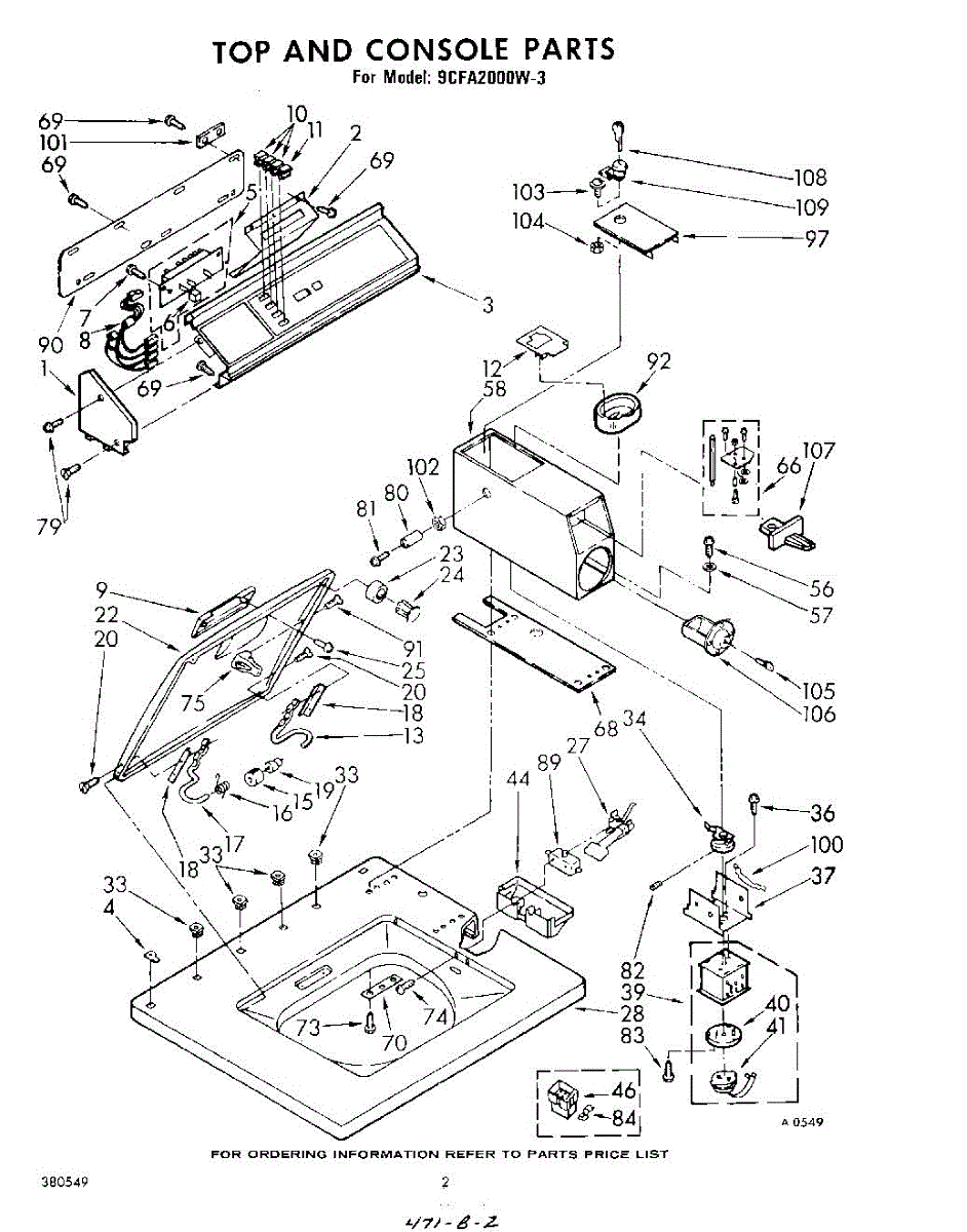 Parts for Whirlpool 9CFA2000W3: 02 - Top And Console Parts