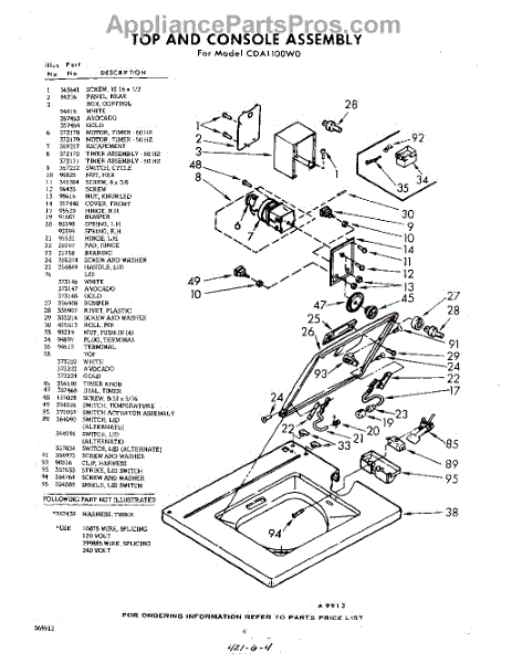 Parts for Whirlpool CDA1100W0: 04 - Top And Console Parts
