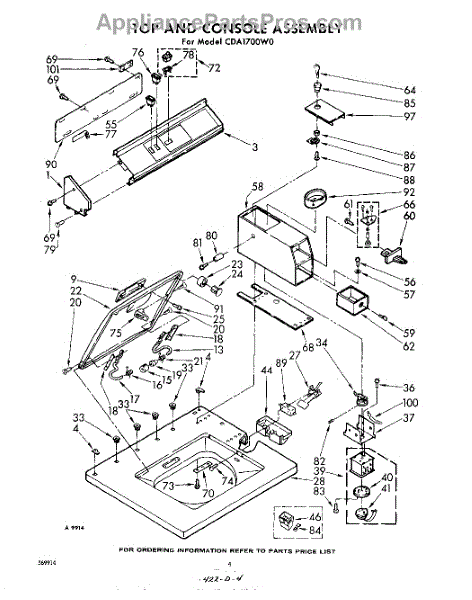 Parts for Whirlpool CDA1700W0: 04 - Top And Console Parts
