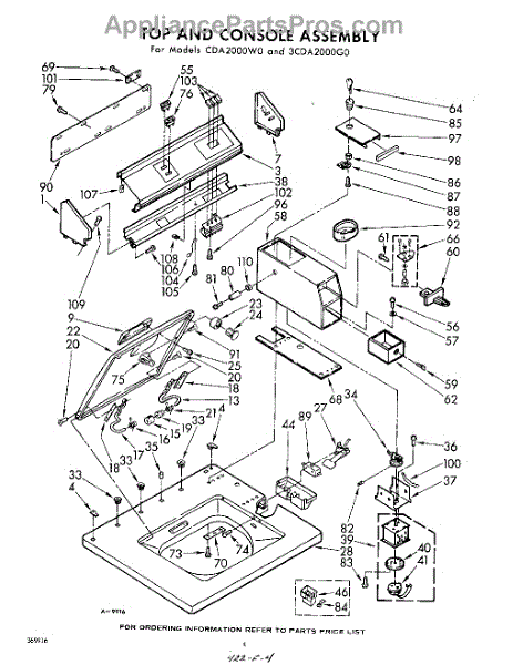 Parts for Whirlpool CDA2000G0: 04 - Top And Console Parts
