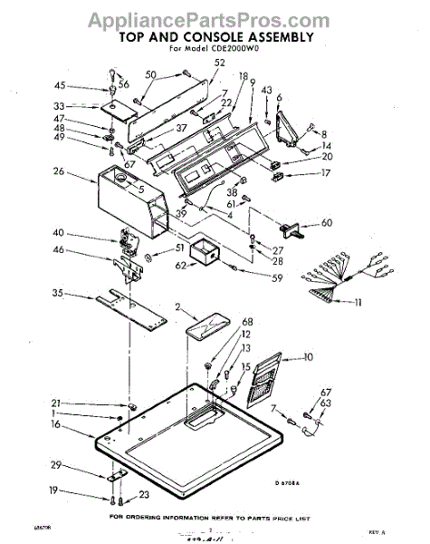Parts for Whirlpool CDE2000W0: 02 - Top And Console Parts