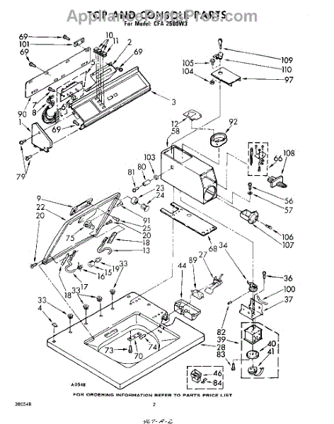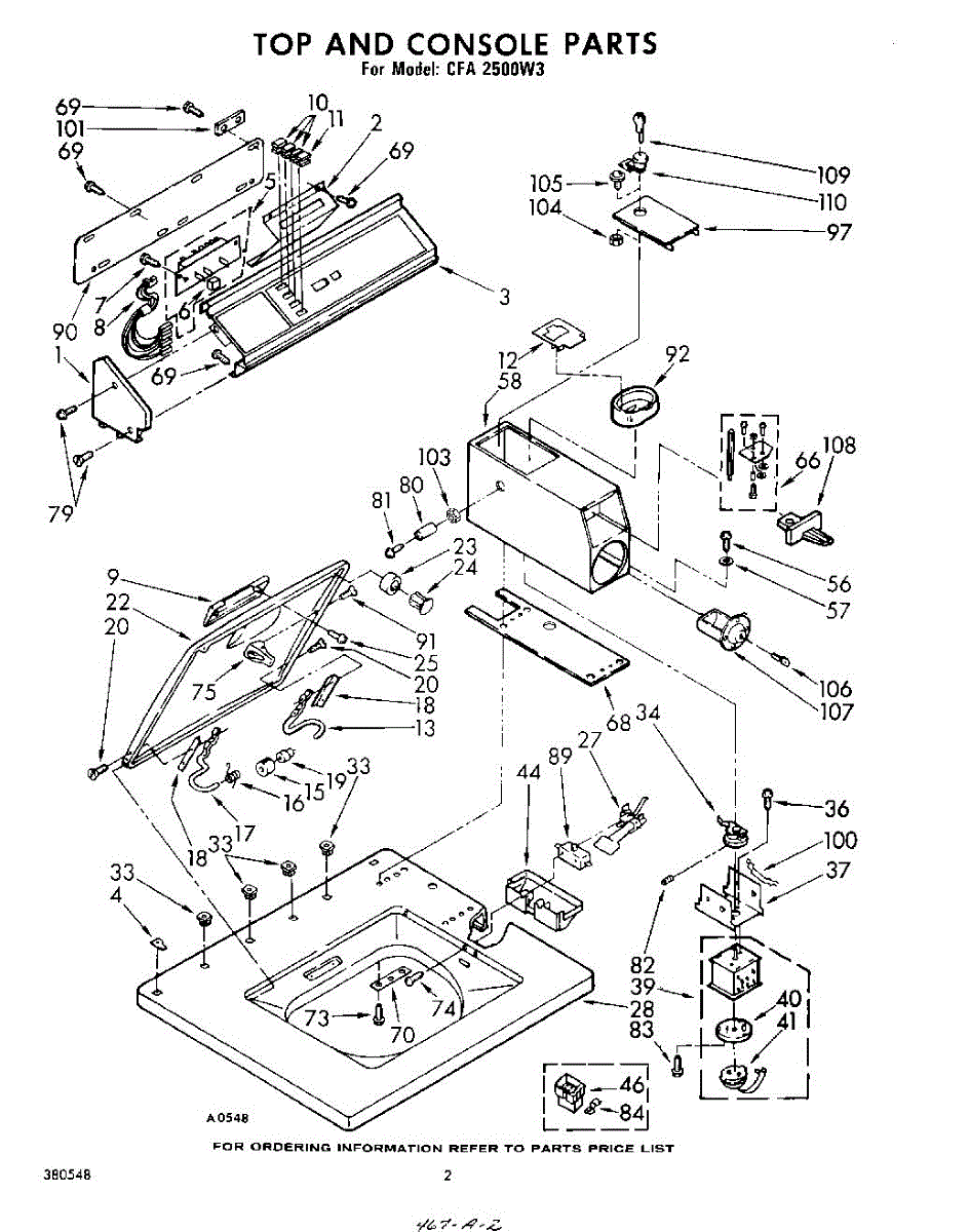 Parts for Whirlpool CFA2500W3: 02 - Top And Console Parts
