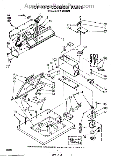 Parts for Whirlpool CFA2500W4: 02 - Top And Console Parts
