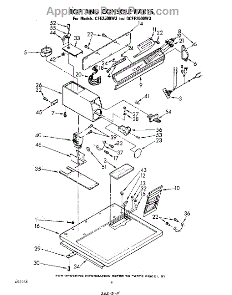 Parts for Whirlpool CFE2500W3: 04 - Top And Console Parts