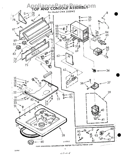 Parts for Whirlpool CWA3500W2: 04 - Top And Console Parts