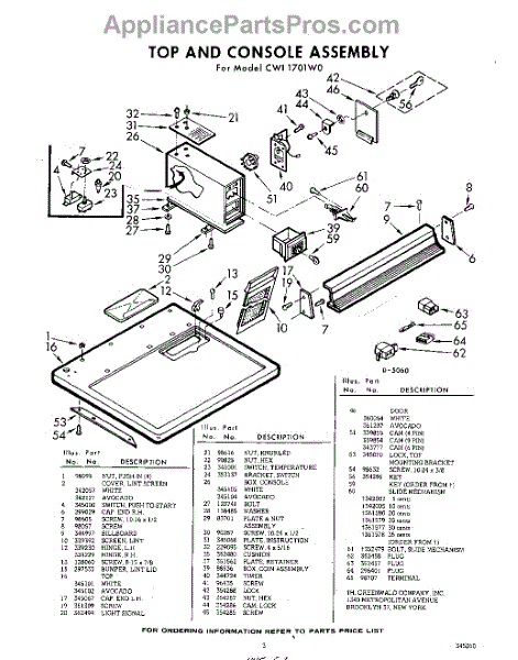 Parts for Whirlpool CWI1701W0: 03 - Top And Console Parts