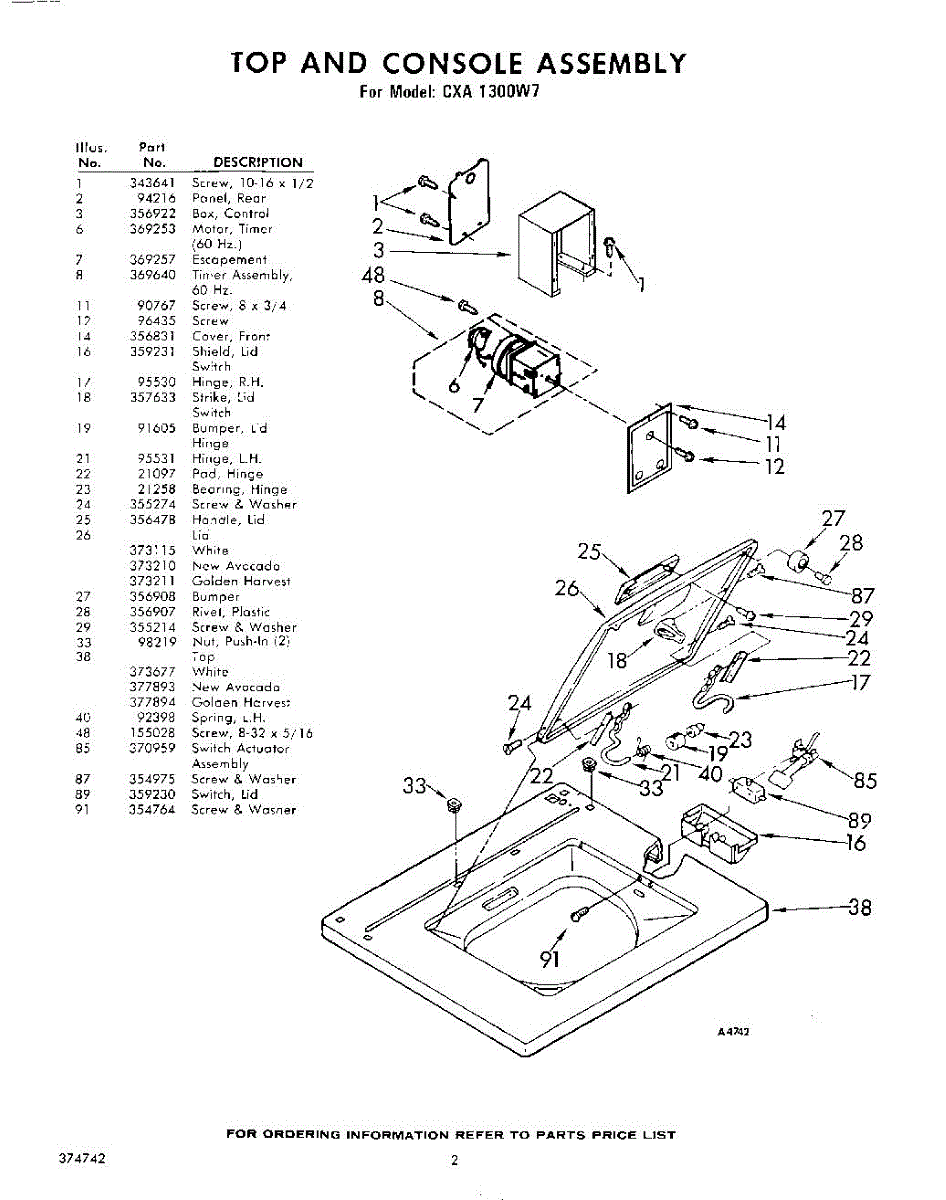 Parts for Whirlpool CXA1300W7: 02 - Top And Console Parts