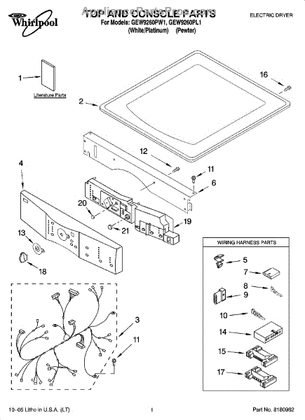 Parts for Whirlpool GEW9260PW1: 01 - Top And Console Parts