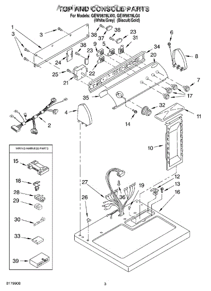 Note: For square top push to start switch, use part number W10156101.