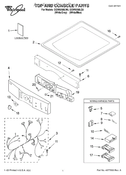 Parts for Whirlpool GGW9200LQ0: 01 - Top And Console, Literature Parts
