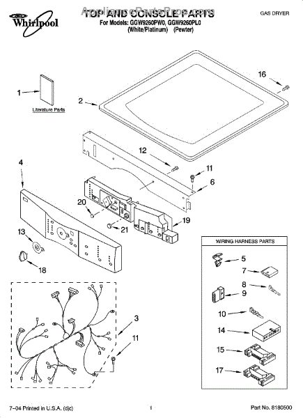 Parts for Whirlpool GGW9260PL0: 01 - Top And Console Parts