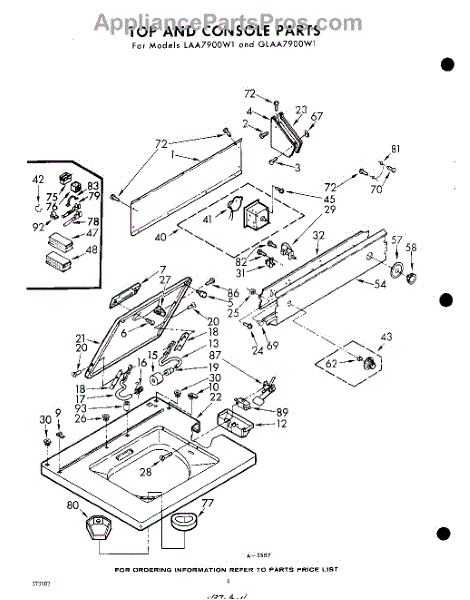 Parts for Whirlpool GLAA7900W1: 04 - Top And Console Parts
