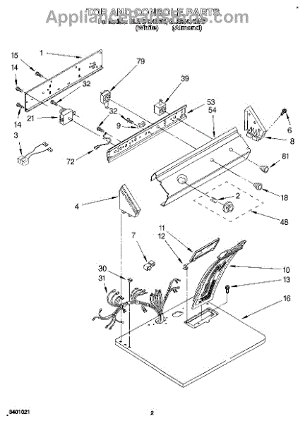 Note: This dryer push-to-start switch has 2 terminals.