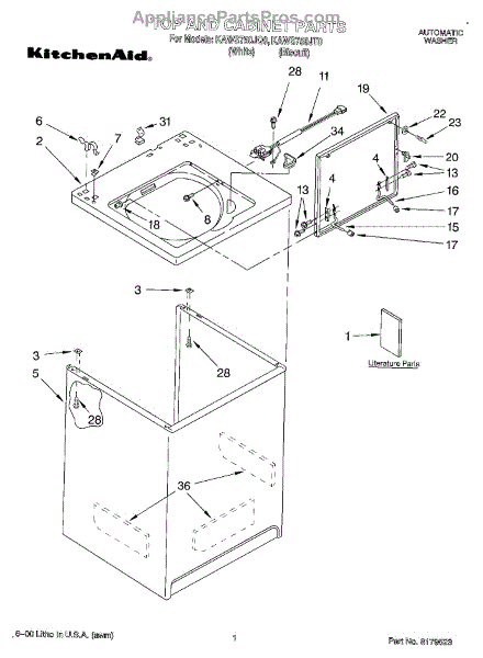 Parts for Kitchenaid KAWS750JQ0: 01 - Top And Console, Literature Parts