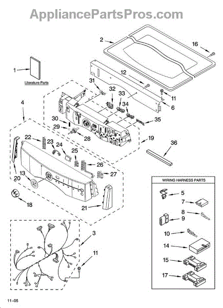 This harness clip secures appliance wiring to the cabinet or components to prevent rubbing, pinching, and interference with moving parts. It keeps wiring routed neatly for reliable operation and reduced risk of abrasion-related failures. What it does:
