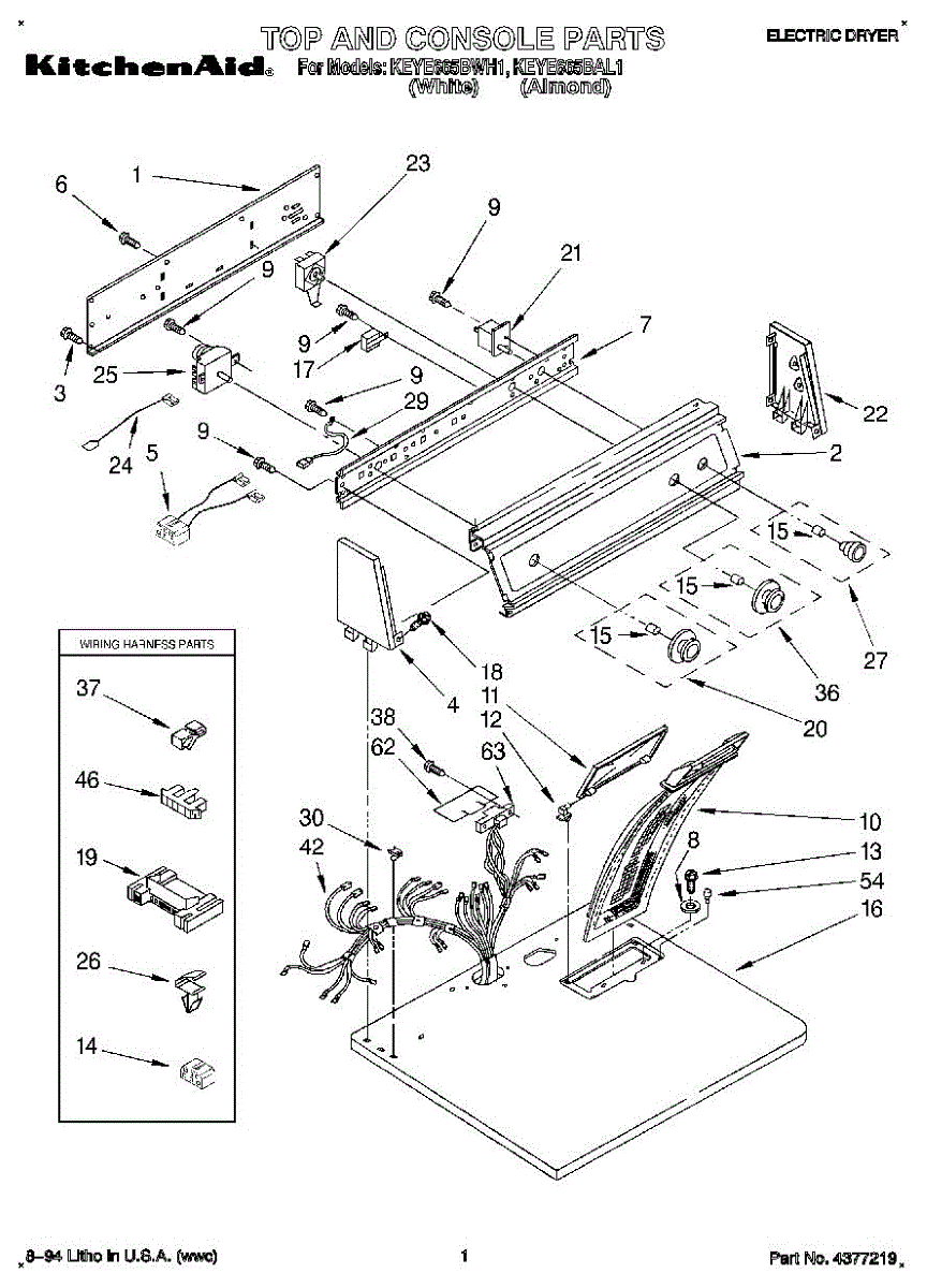 Wire harness assembly that routes power and control signals between dryer components. Replace if wires are damaged, worn, broken, or connections are loose.