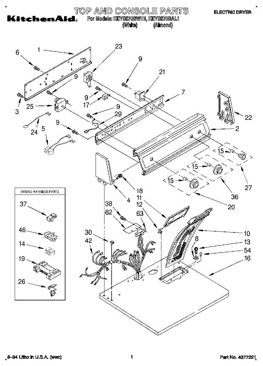 Wire harness assembly that routes power and control signals between dryer components. Replace if wires are damaged, worn, broken, or connections are loose.